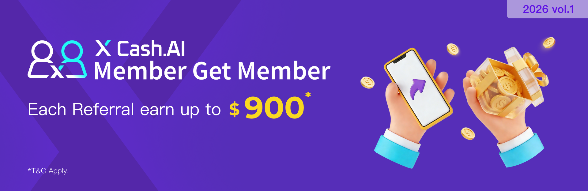 【X Cash.AI Member Get Member】Refer friends to apply X Cash.AI for the first time with successful loan drawdown, earn up to $900 rewards for each referral! More referral more rewards!