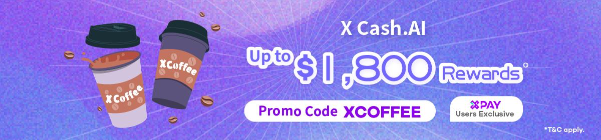 1. X Pay users^ who submit a first-time loan application for X Cash.AI with the promotion code “XCOFFEE” entered during the application process will be entitled to $300 Coffee Gift Card, regardless of the loan approval status. Additionally, customers will be entitled to $500 X Pay e-cash coupon and a $1,000 cash reward once the loan contract is confirmed*.