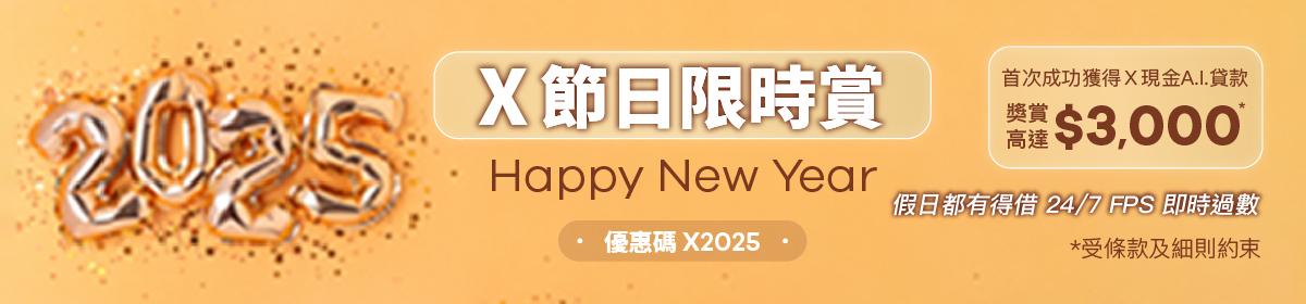 【X節日限時賞】 Happy New Year!首次遞交申請即送$300 X Pay電子現金券,成功貸款再送$2,700現金獎賞!