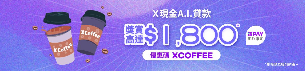 【X Pay用戶限定】X現金A.I.貸款獎賞 : 開戶即送$300咖啡禮品卡, 成功貸款再送高達$1,500獎賞!
